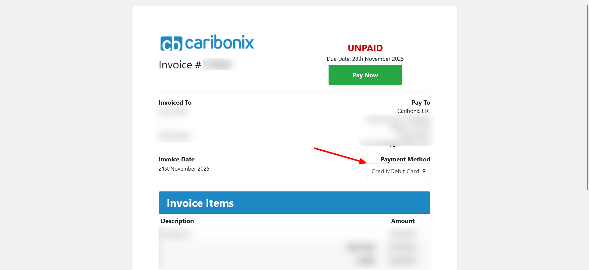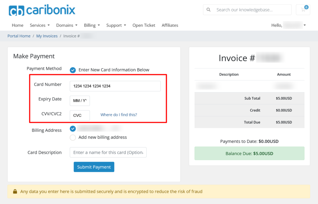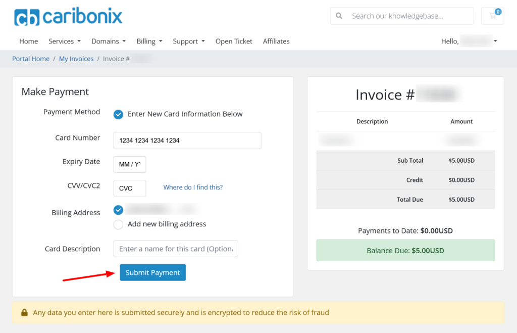 Caribonix uses Stripe to securely process all credit and debit card payments. Follow the steps below to quickly and safely pay your invoice.